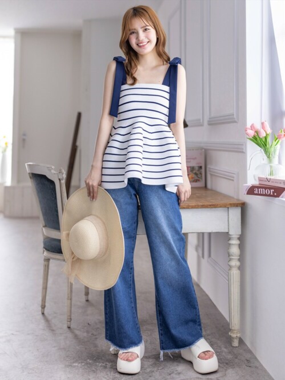 clear(クリア)(clear)のデニムパンツ「【低身長サイズ有】カットオフフレアデニムパンツ[カジュアル 着回し抜群 オールシーズン]≪2024AW≫」を使ったコーディネート