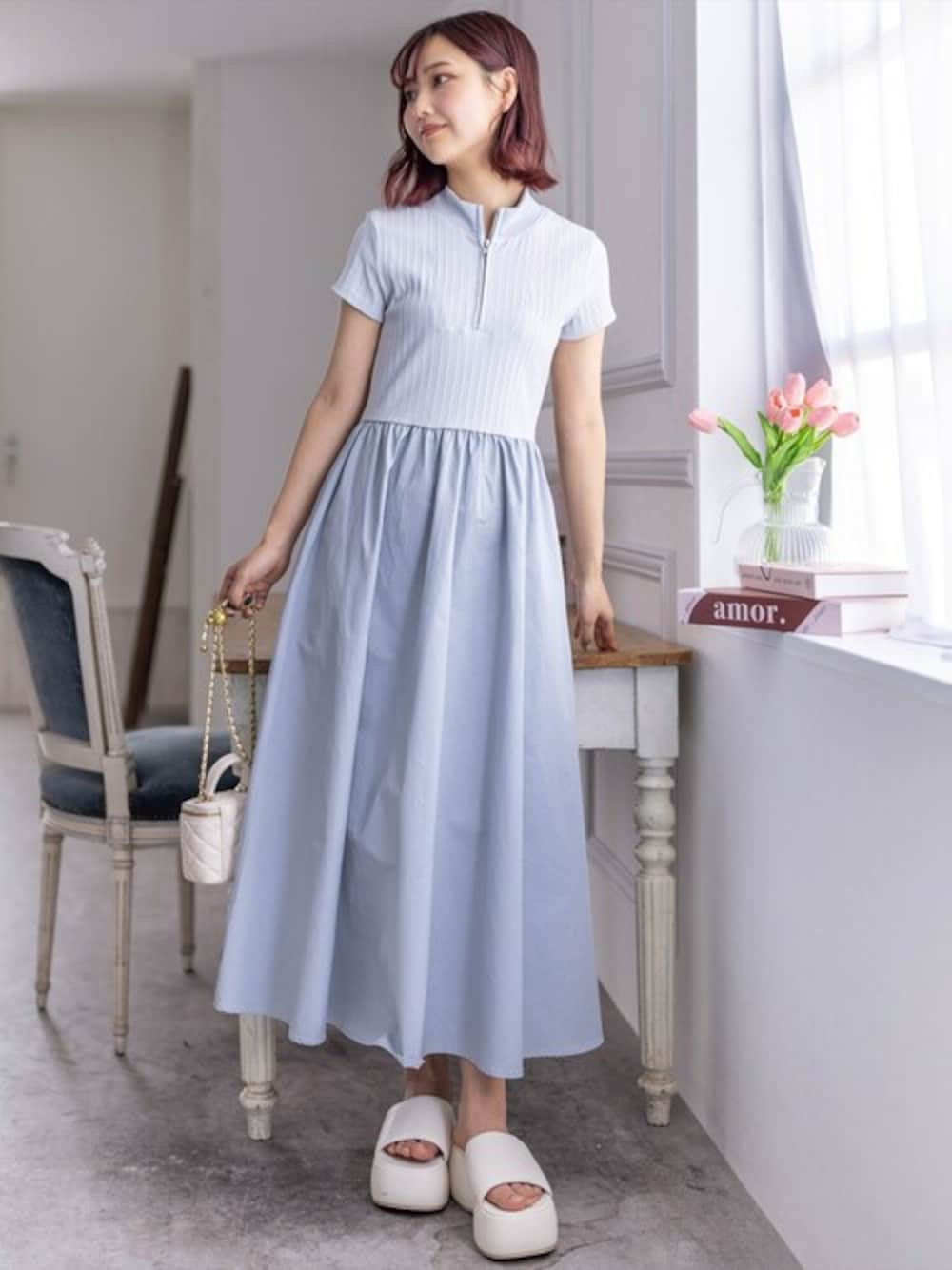 春に大人気だったワンピースが生地違いで登場します!スカートの広がりやカットソー部分のコンパクトさから、カジュアルすぎず大人可愛い印象になります♪ハーフジップでトレンド感を演出します。