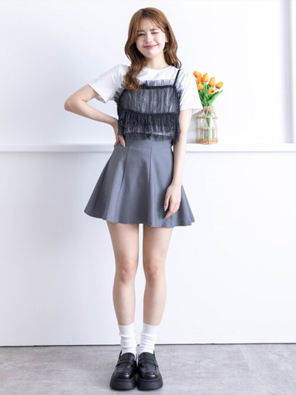 clear(クリア)(clear)のスカート「×インパン付き八枚ハギミニスカート≪2024SS≫」を使ったコーディネート