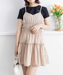 ウエストがゴムで絞られているので、着膨れしないワンピースです。ふんわりとした裾が女の子らしい印象にしてくれます!インナー次第で長く着ていただけます♪