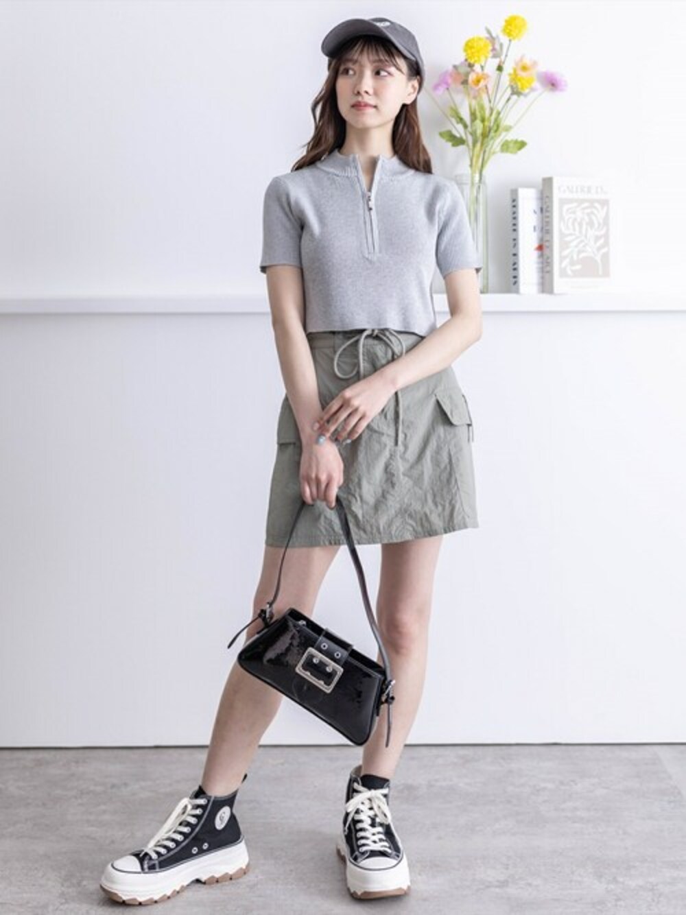 clear(クリア)(clear)のスカート「ナイロンカーゴ風ミニスカート」を使ったコーディネート