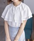 デザインがシンプルなので、どんなシーンにも万能ブラウス。ダブルケープで顔周りが華やかに仕上がります♪カラー展開も合わせやすいオフホワイト,ブラックと夏らしいサックスで着回しやすいです!