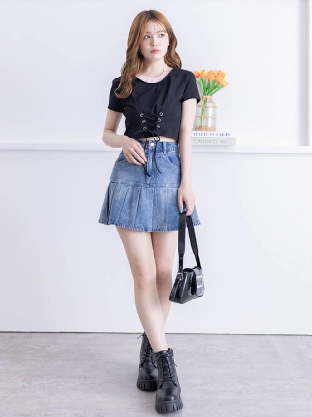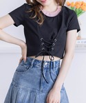 1枚でキャミソールをレイヤードしているように見えるカットソーなので、暑い夏でも涼しげに着ていただけます♪フロントのレースアップもポイントで、オシャレ感がアップします!
