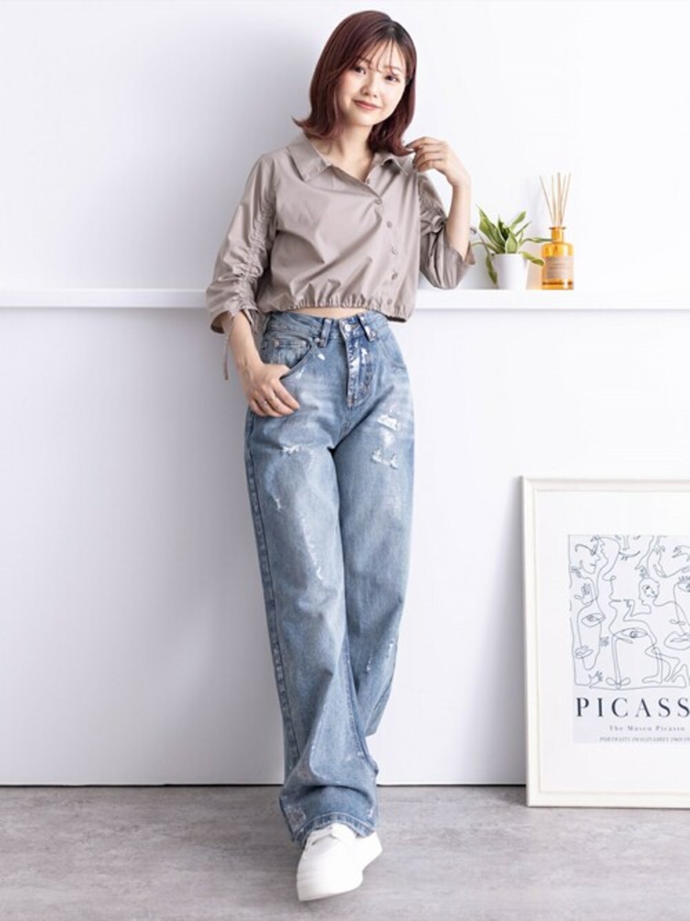 clear(クリア)(clear)のデニムパンツ「【低身長サイズ有】箔プリントダメージストレートデニムパンツ[着回し抜群 ストリート]」を使ったコーディネート