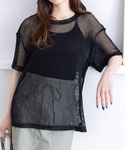 夏にぴったりな清潔感のあるメッシュ生地のトップスです。ロング丈なので体型カバーが叶い、インナー次第で幅広くコーデをお楽しみいただけます♪