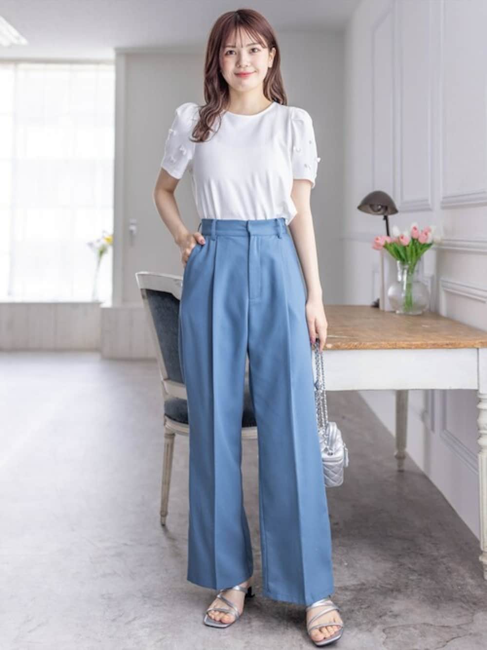 clear(クリア)(clear)のスラックス「【低身長サイズ有】ワンタックストレートパンツ[骨格ストレート オフィスカジュアル セットアップ可能]」を使ったコーディネート