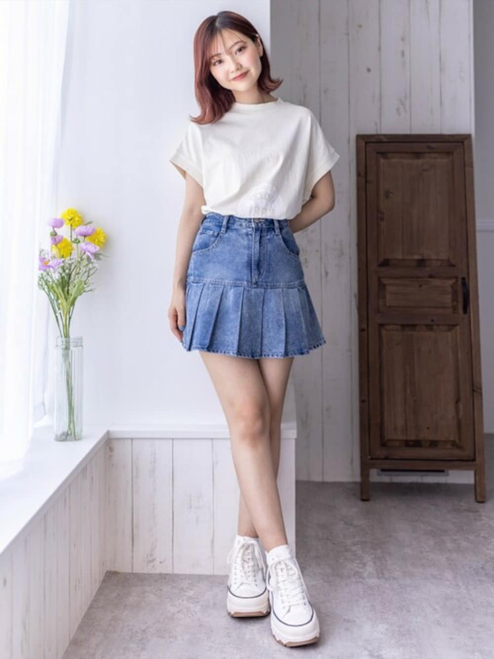 clear(クリア)(clear)のデニムスカート「インパン付きデニムプリーツミニスカート [スタイルアップ]≪2024AW新作≫」を使ったコーディネート