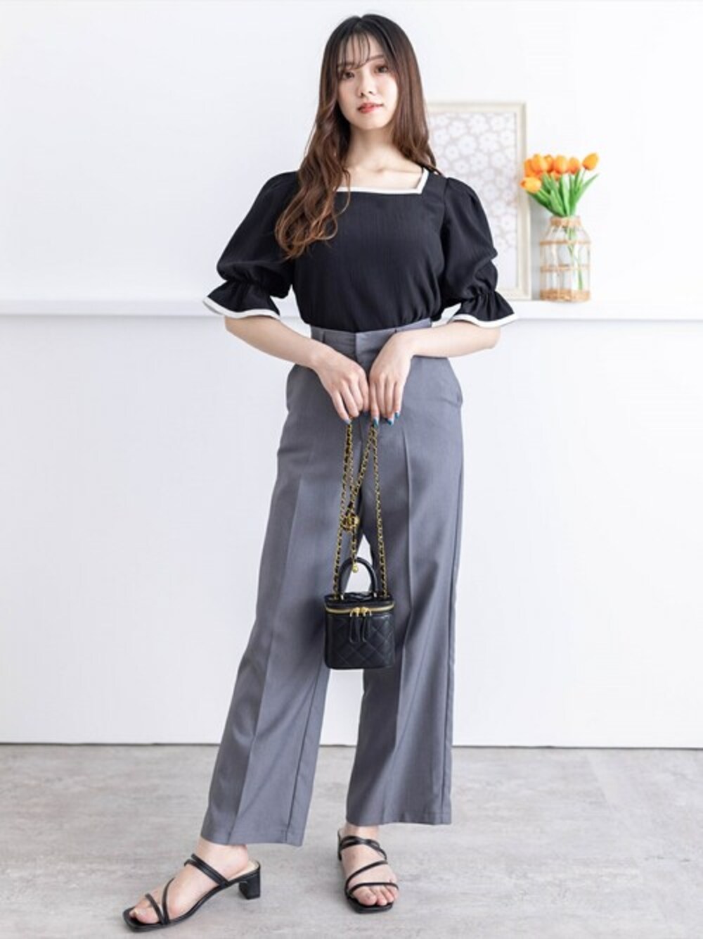 clear(クリア)(clear)のスラックス「【低身長サイズ有】ワンタックストレートパンツ[骨格ストレート オフィスカジュアル セットアップ可能]≪2025SS新作≫」を使ったコーディネート