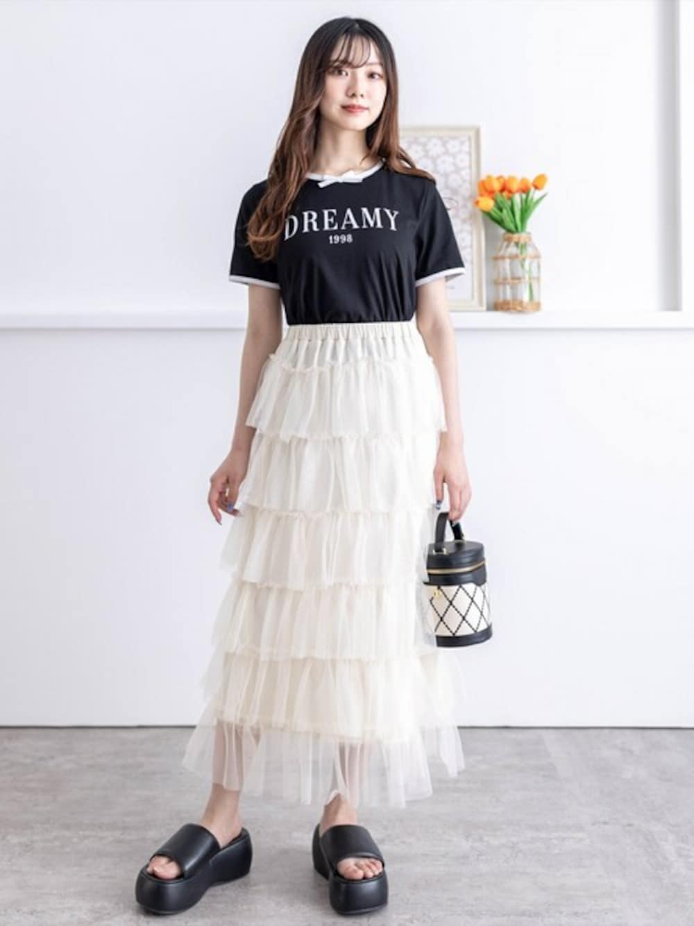 clear(クリア)(clear)のスカート「チュール6段ティアードスカート[低身長用サイズ有 大人 フェミニン]≪再入荷≫」を使ったコーディネート