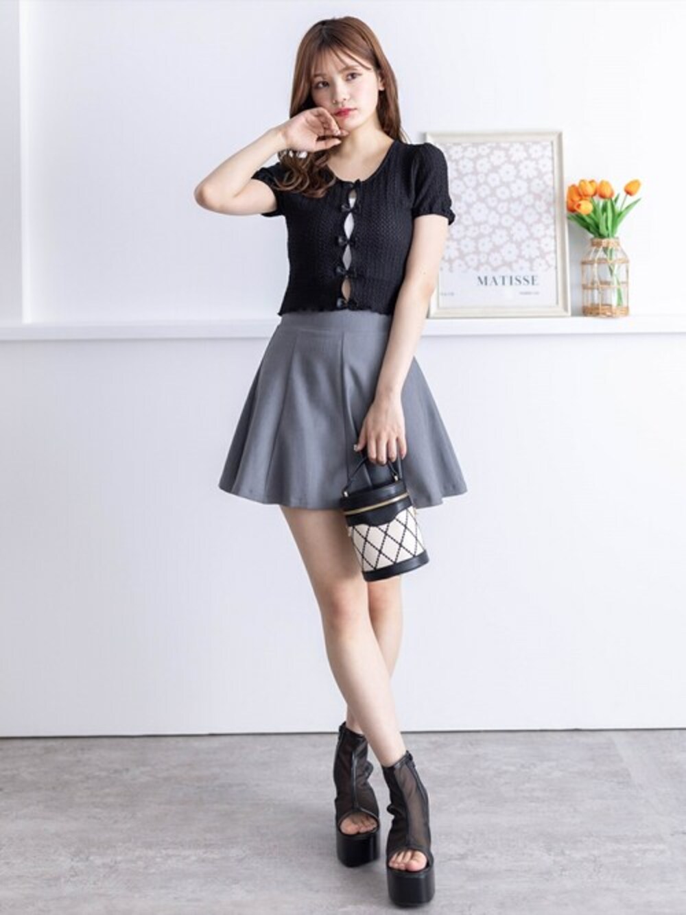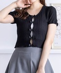 トレンドのバレエコアスタイルが叶うトップスです。フロントのリボンや裾のメロー感が可愛いポイントです!さらに表面変化のある生地で高見えします♪