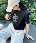 夏らしいデニム生地のロゴがあしらわれたTシャツです。大きめのデニムロゴは存在感があり目を引くポイントです!コンパクトなシルエットなので、スタイルアップ効果があります♪