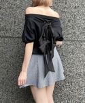大きなバックリボンで後ろ姿まで可愛いスウェットトップスです。カジュアルになりやすいスウェットですが、リボン付きなので甘めな印象になります!オフショルとして着用できるので、ヘルシーな肌見せが叶います♪