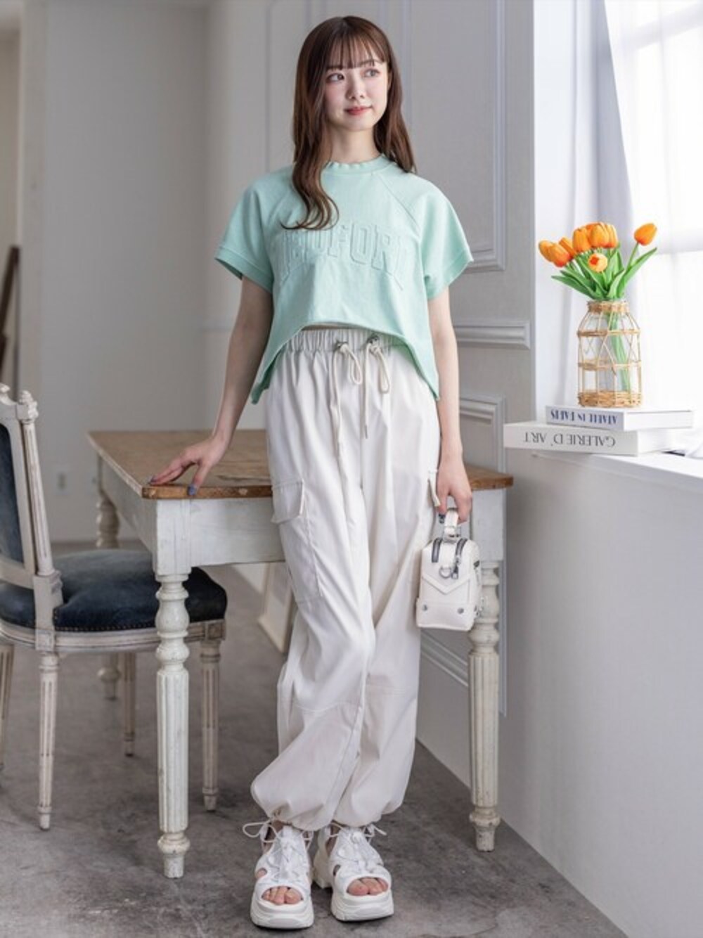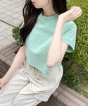 ピグメント加工によりヴィンテージライクなカットソートップスです。胸元の大きなエンボスロゴがポイントです!ショート丈なのでヘルシーな肌見せが叶います♪