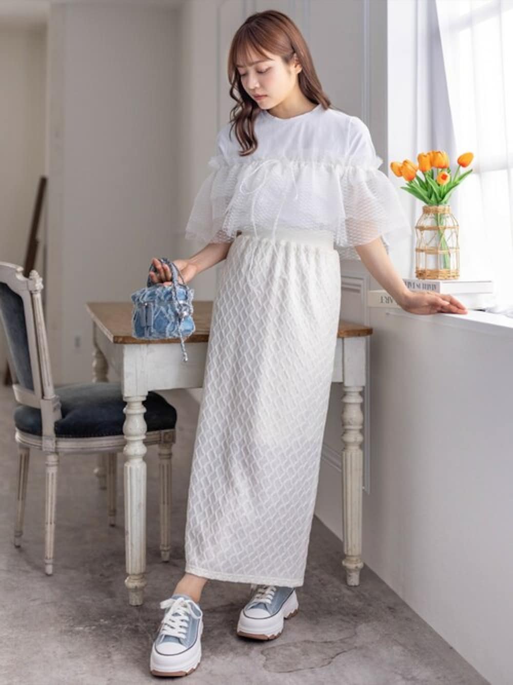 トレンド感のあるチュール素材で華やかなコーデに仕上がります♪たすき掛けにしたりビスチェっぽく着まわしたりと、着こなし方を楽しんでいただけるセット商品です。ぜひお好みの着方を見つけてください!