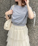 サイドのラインリボンが可愛らしいポイントのスウェットトップスです。胸元の刺繍も目を引くポイントです!薄手のスウェット生地で暑い夏でも涼しげにご着用いただけます♪
