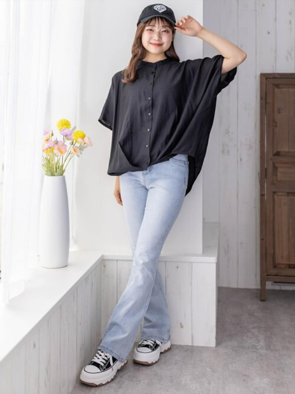 clear(クリア)(clear)のデニムパンツ「【5色展開/低身長サイズあり】ミドルライズフレアデニムパンツ≪2025SS新作≫」を使ったコーディネート