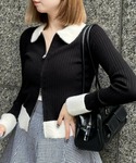 clear(クリア)(clear)のニット/セーター「襟袖ショートフェザーダブルジップリブニットトップス [大人 カジュアル 着回し力抜群]≪再入荷≫」を使ったコーディネート