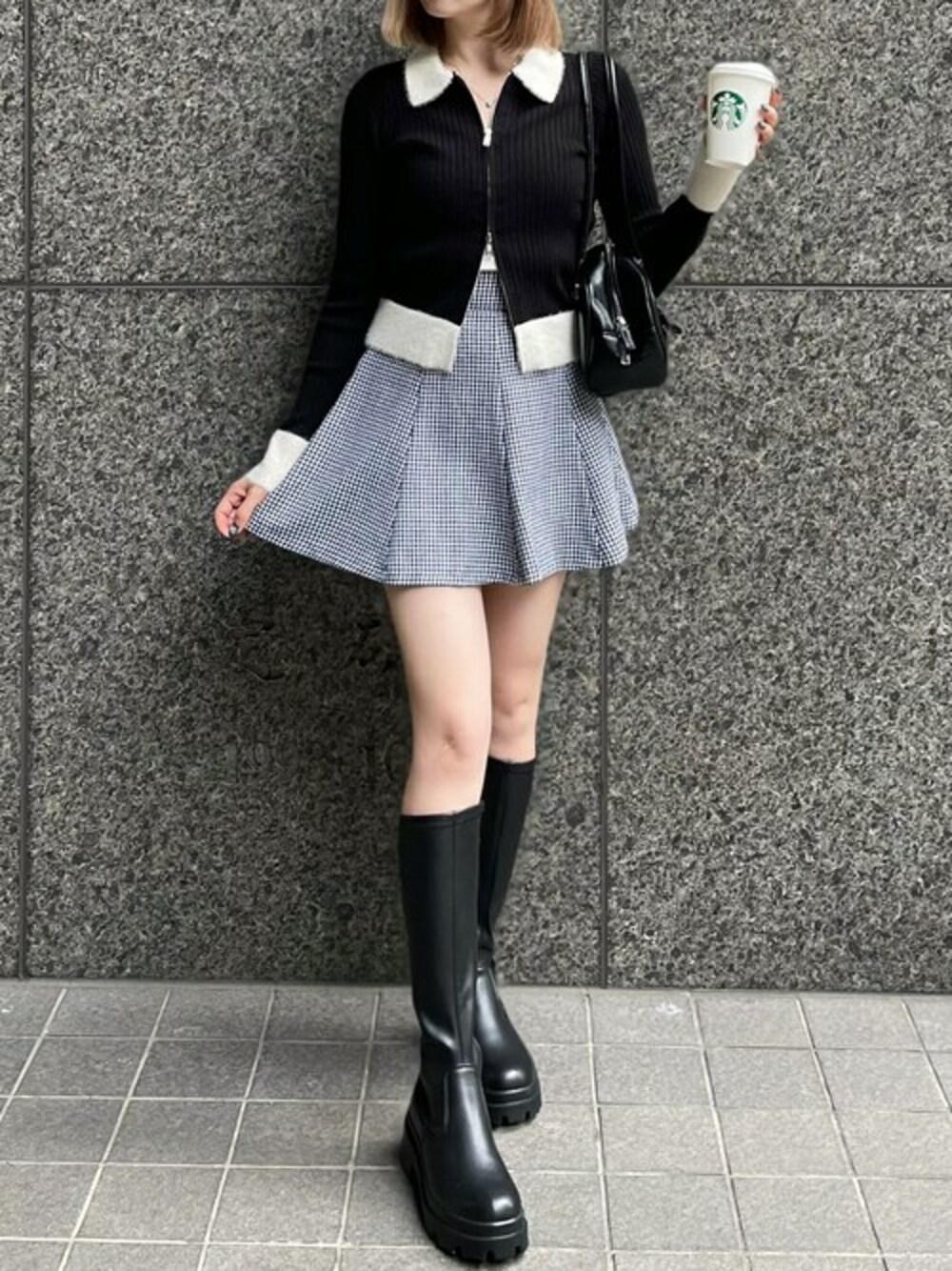 スカートの形がきれいなので、脚長効果が叶います♪カラー展開もシンプルなブラックとグレー、甘め可愛いブラック千鳥と種類があるのでお好きなカラーが見つかります!