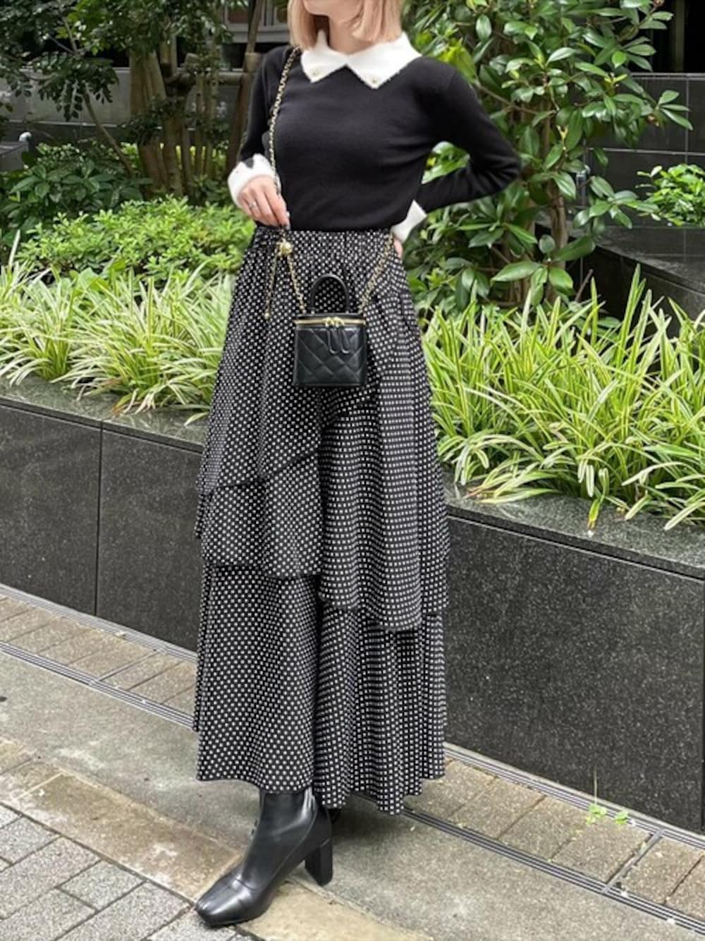 配色部分のフェザー素材で、女性らしさを演出。サイズ感もコンパクトなので、バランスよくどんなボトムスにも合わせやすいです!伸縮性もあるので着心地も抜群です!