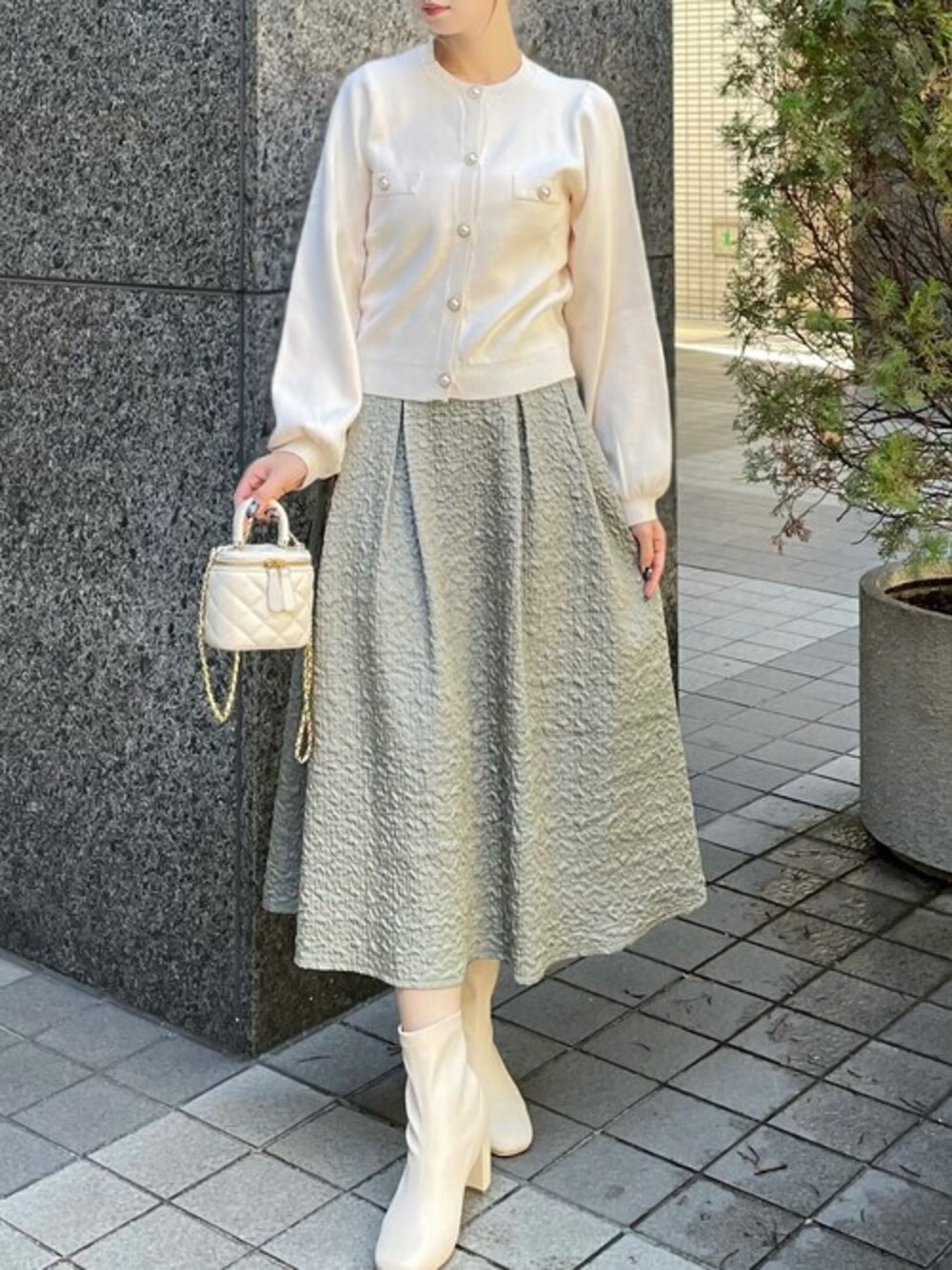 clear(クリア)(clear)のスカート「【低身長用サイズ有】ブークレフレアスカート [大人 フェミニン 華やか 着心地抜群]≪再入荷≫」を使ったコーディネート