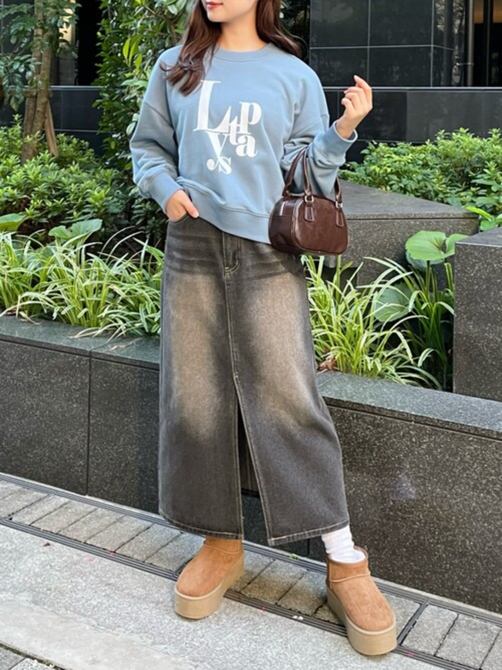 clear(クリア)(clear)のスウェット「アルファベットプリント普通丈スウェットトップス [着回し抜群 ゆったりシルエット]≪再入荷≫」を使ったコーディネート