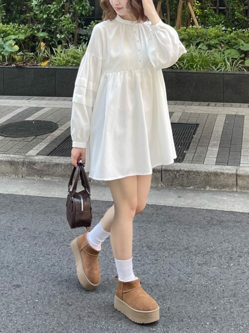 フロントのクルミボタンやボリューム感のある袖が可愛いデザインのブラウスです。シルエットを拾わないチュニック丈なので、気になる部分をカバーできます!さらにウエスト部分に切り替えがあるので、自然とスタイルアップが叶います♪