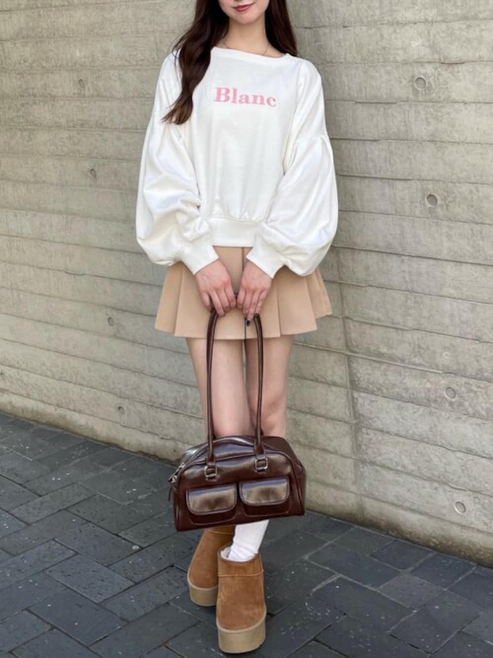 シンプルですが、目を引くロゴ刺繍がポイントのスウェットです。ショート丈なので、着るだけで自然とスタイルアップします!たっぷりとした袖のボリューム感で、ふんわりとした可愛い雰囲気が叶います♪