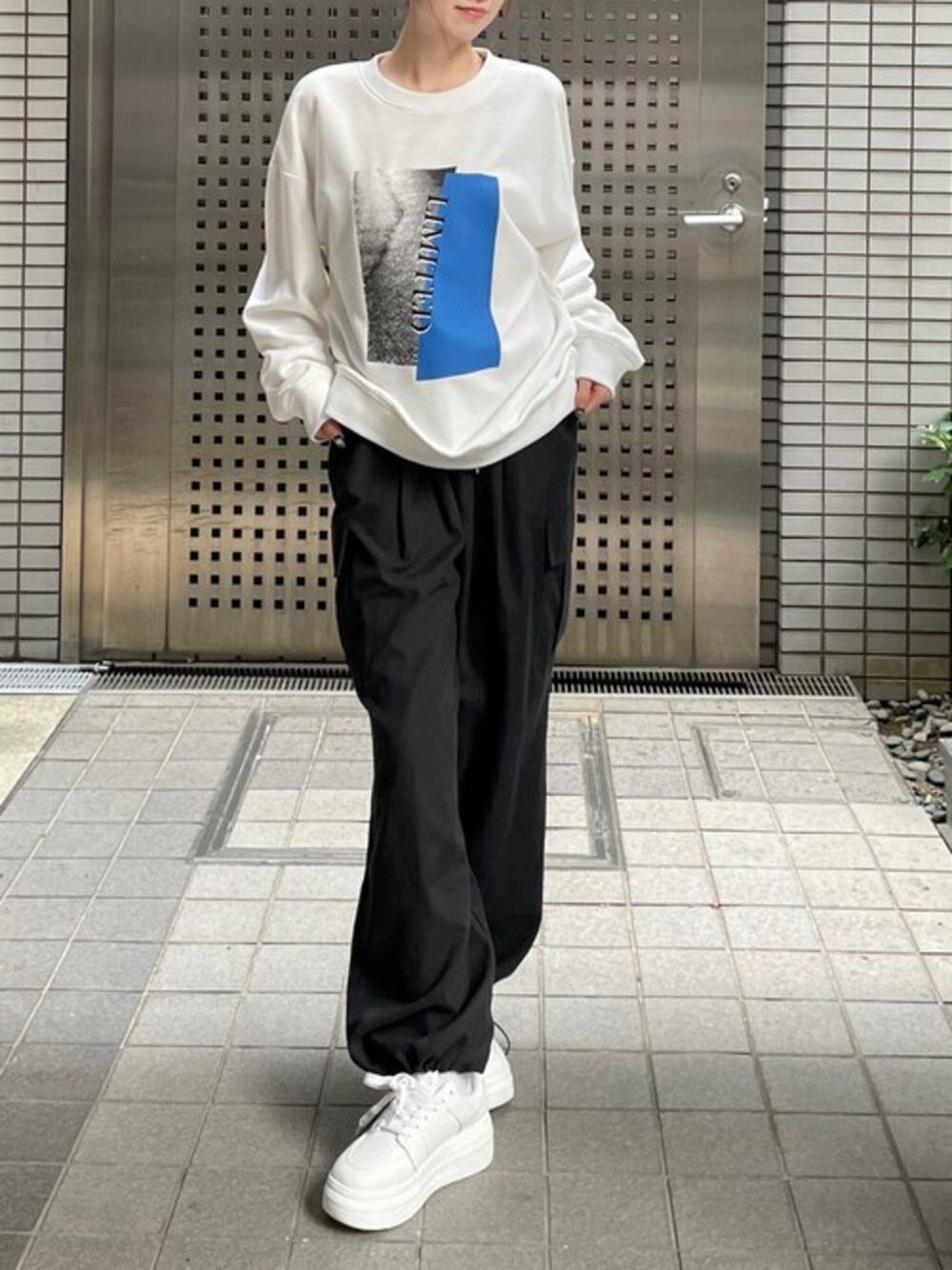 clear(クリア)(clear)のスウェット「配色プリントロング丈スウェットトップス [大人カジュアル]≪2024AW新作≫」を使ったコーディネート
