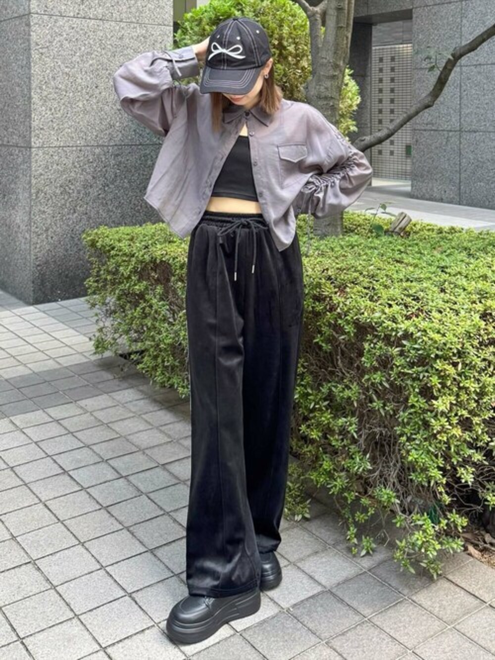 カジュアルなスタイリングにぴったりなパンツです!ベロア素材なので光沢感がコーデのワンポイントになります。また、ウエストゴムなのでリラックス効果も期待できます!