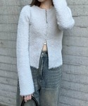 ショートフェザー素材で暖かみのあるニットトップスです。トレンド感のあるダブルジップがほどこされていて、抜け感のあるコーデに仕上がります♪ハイウエストのボトムス合わせで、さらにスタイルアップが叶います!