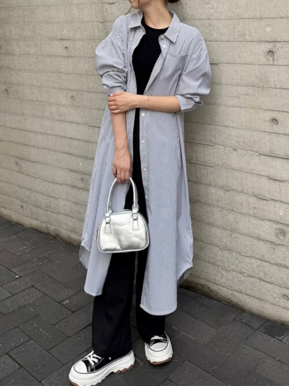 ストライプ柄で自然とスタイルアップが叶うワンピースです。さらにロング丈でゆったりとしているので、シルエットを拾いにくくなっています♪様々な着こなし方ができるので、コーデの幅が広がります!