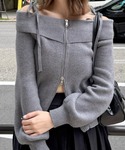 トレンド感のあるダブルジップがほどこされたニットトップスです。オフショルですが肩リボンがついているので、ご着用いただけやすいです!肩リボンは調節可能なのも嬉しいポイントです♪