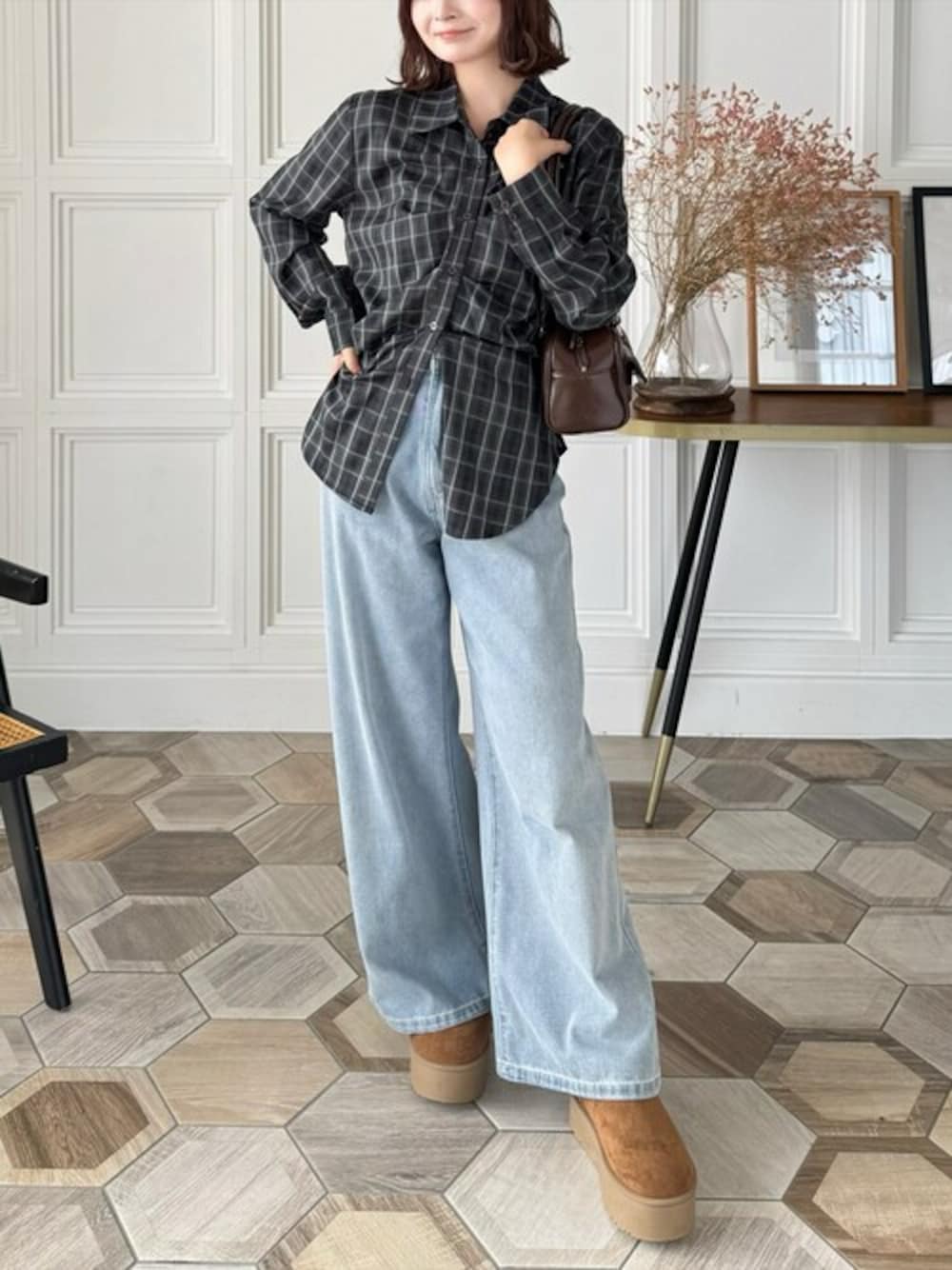 タックよるボリューム感が目を引くトップスです。さらに存在感のあるチェック柄なのでコーデのポイントになります♪着丈も長めなので、気になる部分をカバーできます!