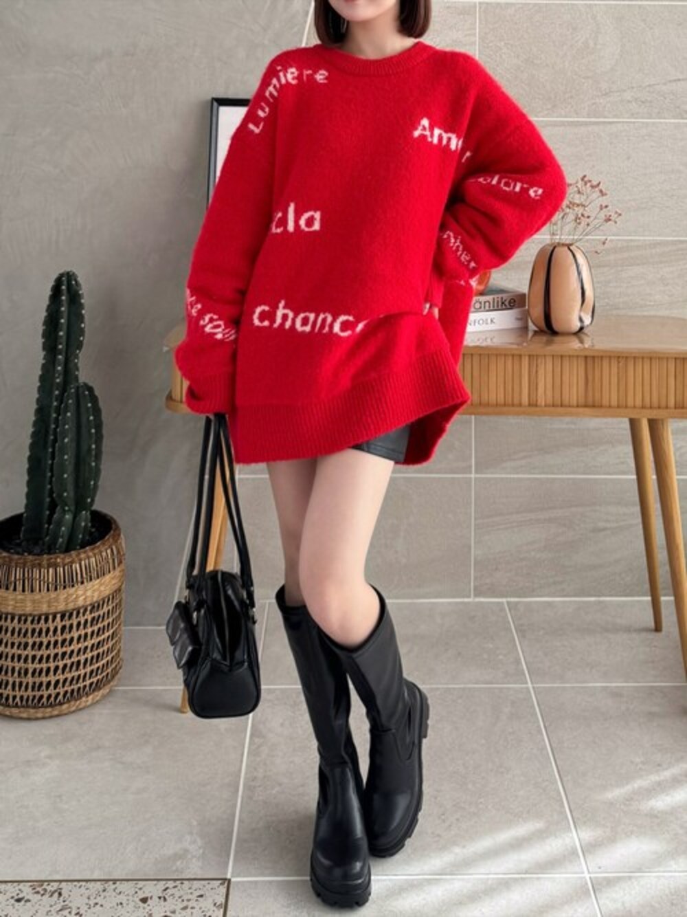 clear(クリア)(clear)のワンピース「リバーシブルロゴニットワンピース [2way オーバーサイズ ]≪2024AW新作≫」を使ったコーディネート
