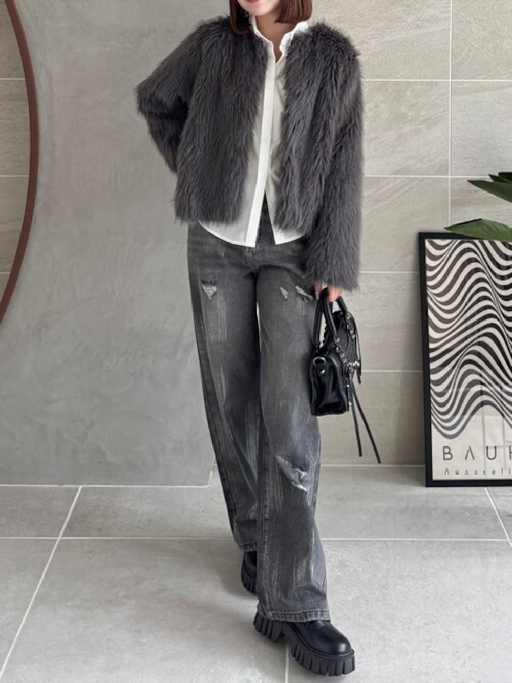 高見えすること間違いなしのファー素材のジャケットです。毛足が長くボリューム感があり、羽織るだけでこなれ感のあるコーデが叶います♪フロントにはホックがあり、閉めてもご着用いただけます!