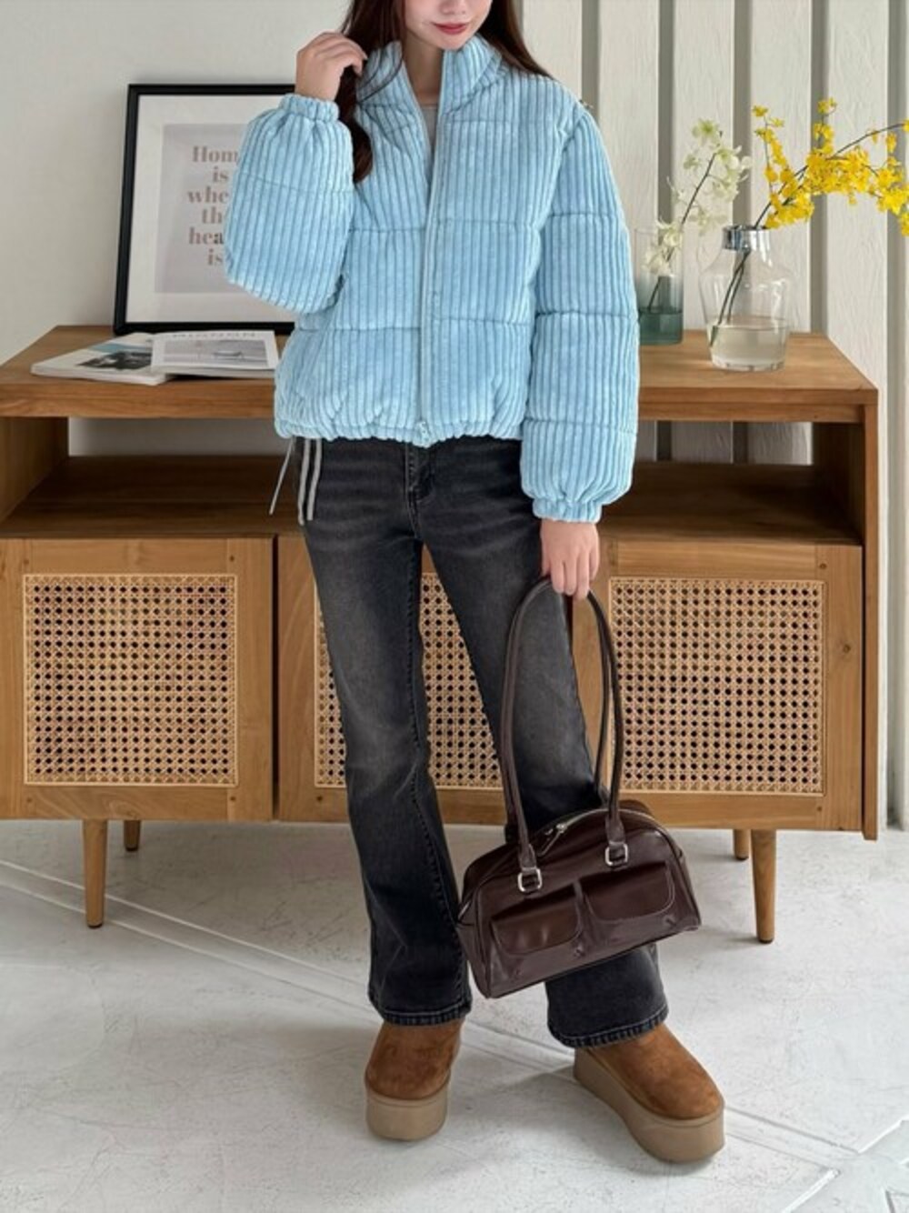 コーデュロイ素材で、防寒性が抜群の中綿アウターです。さらにスタンド襟仕様なので、マフラー要らずで過ごせます!ベーシックなカラーから、映えるピンクやサックスまでカラー展開も豊富です♪