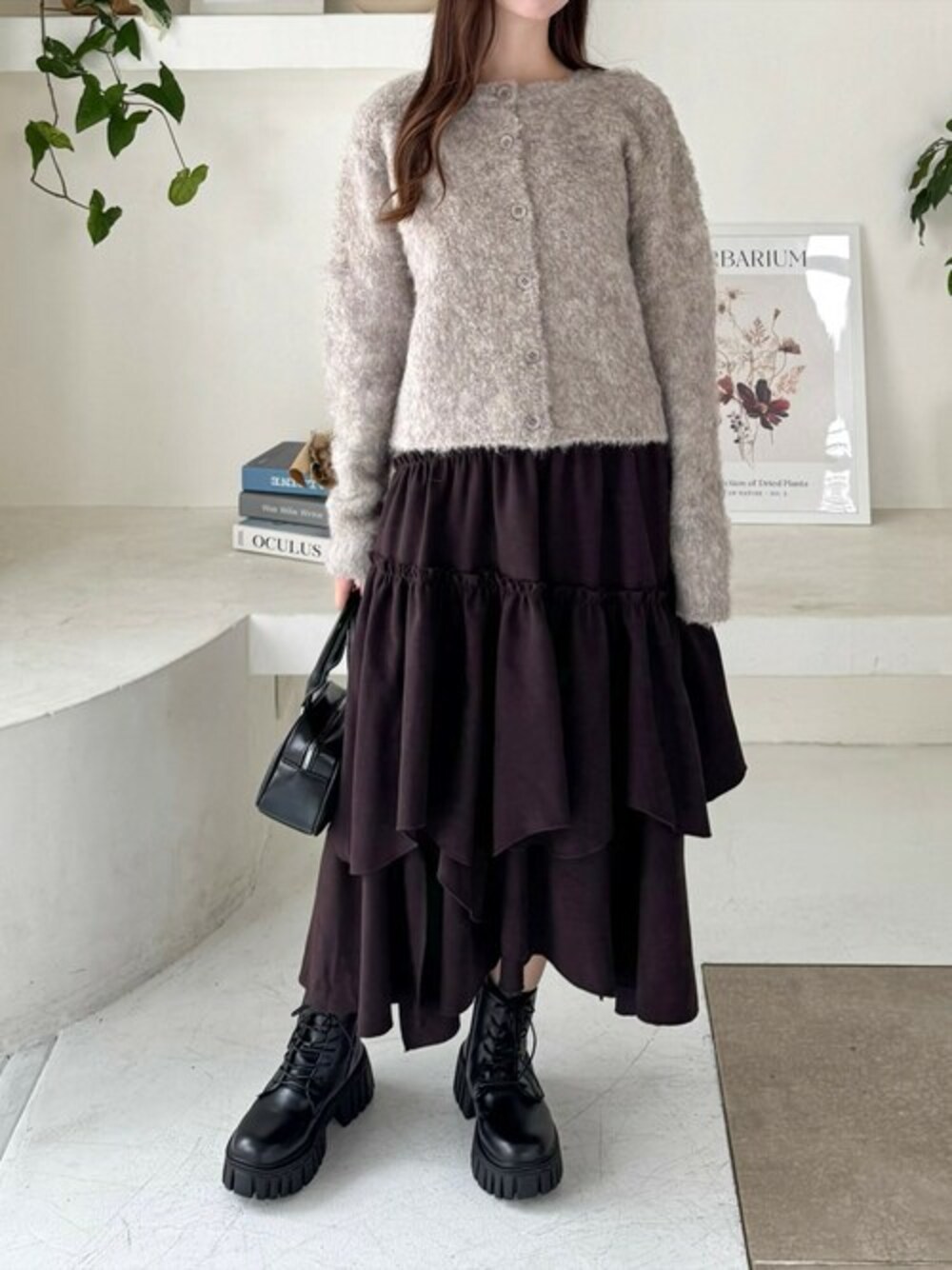 ふわふわとした起毛感が特徴的な、ブークレ素材のカーディガンです。着心地が良く、寒い冬でも暖かくご着用いただけます♪シンプルなデザインなので、着回し万能抜群です!