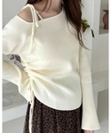 ワンショルデザインでヘルシーな肌見せが叶うニットトップスです。さらにトレンド感のあるサイドのドロストもコーデのポイントになります♪ドロストを絞って、ハイウエストのボトムス合わせでさらにスタイルアップが叶います!