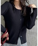 1枚でもデザイン性があり、コーデのポイントになるニットトップスです。肩紐のリボンは長さ調節可能なのも嬉しいポイントです♪フロントのボタンを開けてカーディガンとしても着まわしていただけます!
