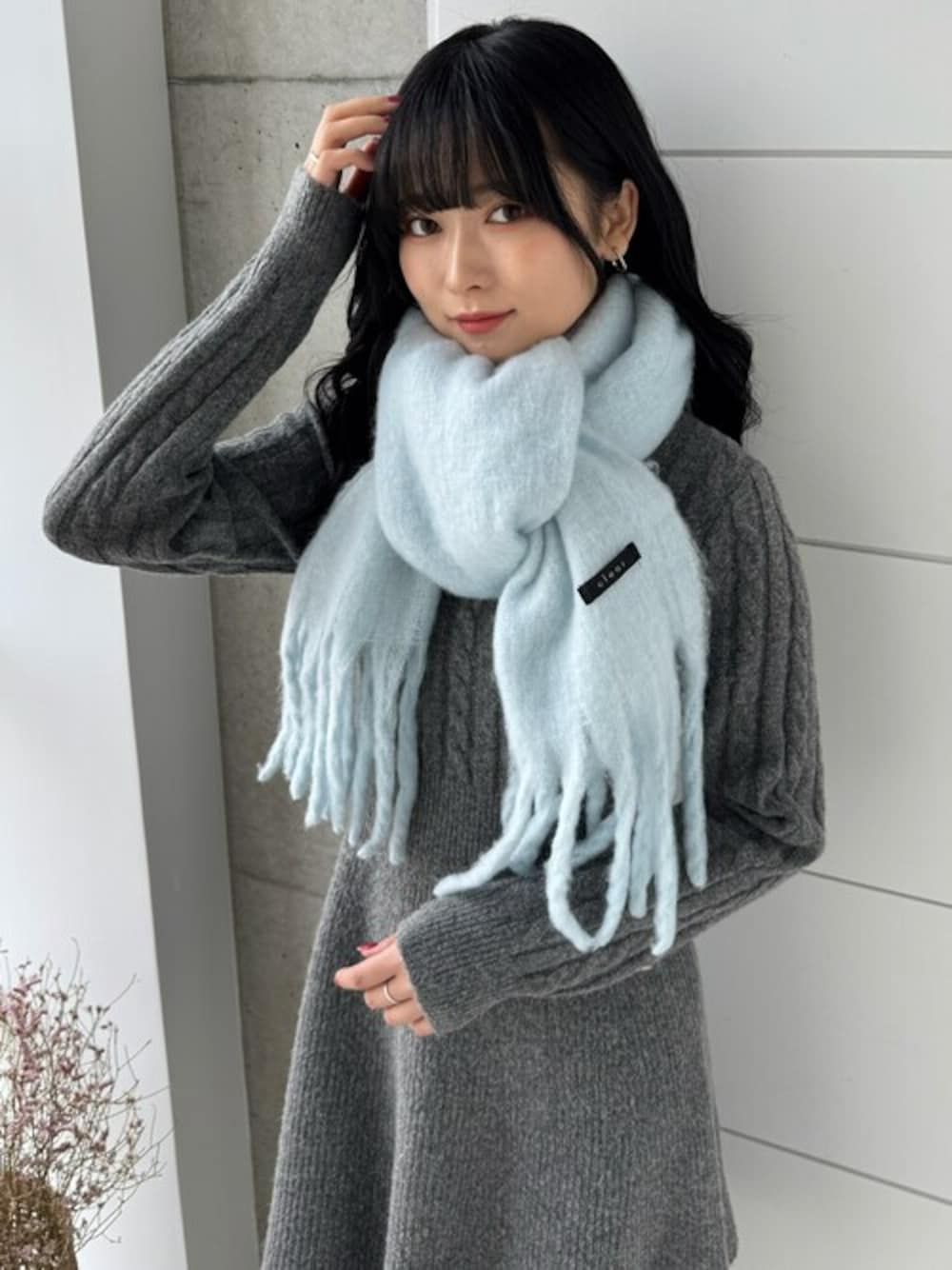 clear(クリア)(clear)のマフラー「【11色展開/定番】フリンジボリュームマフラー[厚手 もこもこ感 大人 カジュアル 着回し抜群 ]」を使ったコーディネート