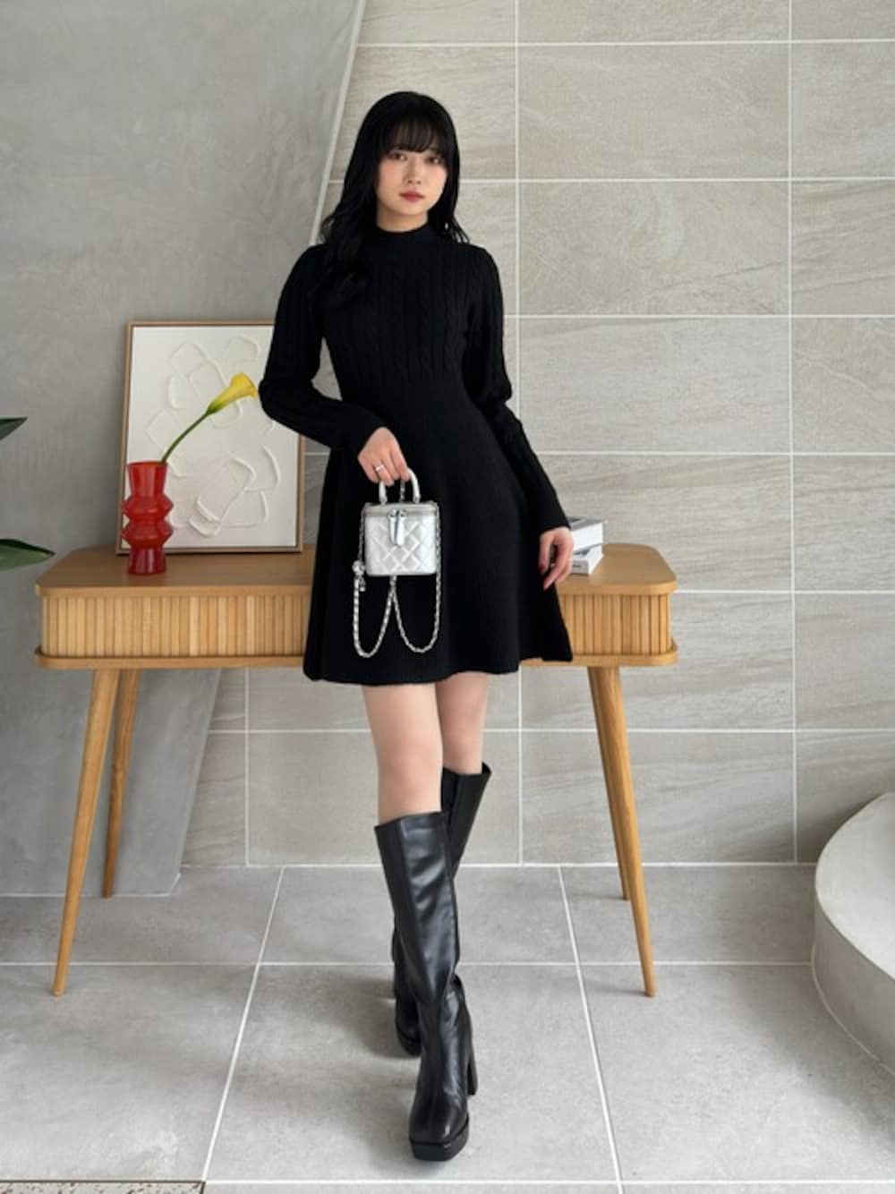 冬の気分を盛り上げてくれるケーブルミニニットワンピース。 伸縮性のあるニット素材で、程よく体にフィットし、ボディラインをきれいに見せてくれます。 1枚でロングブーツを合わせた今年らしいスタイリングが叶います。