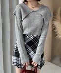 大きめのビックカラーが目を引くフェミニンムードなニットトップス。 肩にかかるデザインで、華奢見せ効果が期待できるのも嬉しいポイントです。 体に心地よくフィットするタイトシルエットでトレンド感のあるチャック柄のミニスカートと合わせてみました。 美脚見えが叶うようにシルエットにこだわりました!
