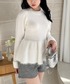 ペプラム部分にシャギー素材を施したニットトップス。 シャギー特有の肌触りでチクチク感もなく、とても滑らかなタッチが特徴です。 ウエストをシェイプして裾がふんわり広がったペプラムラインなので、大人可愛く着ていただけます。千鳥柄のショートパンツに合わせてみました。ハイウエストなデザインなので、着るだけでスタイルアップが叶います♪