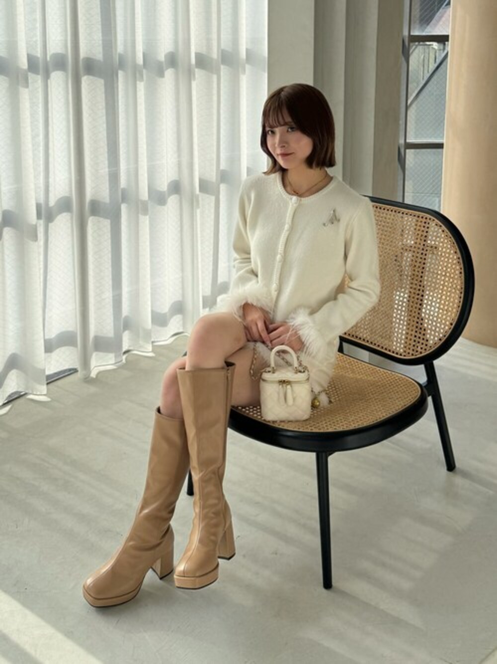 clear(クリア)(clear)のニット/セーター「ブローチ付き袖口ファーカーディガン≪STAY MOTION≫」を使ったコーディネート