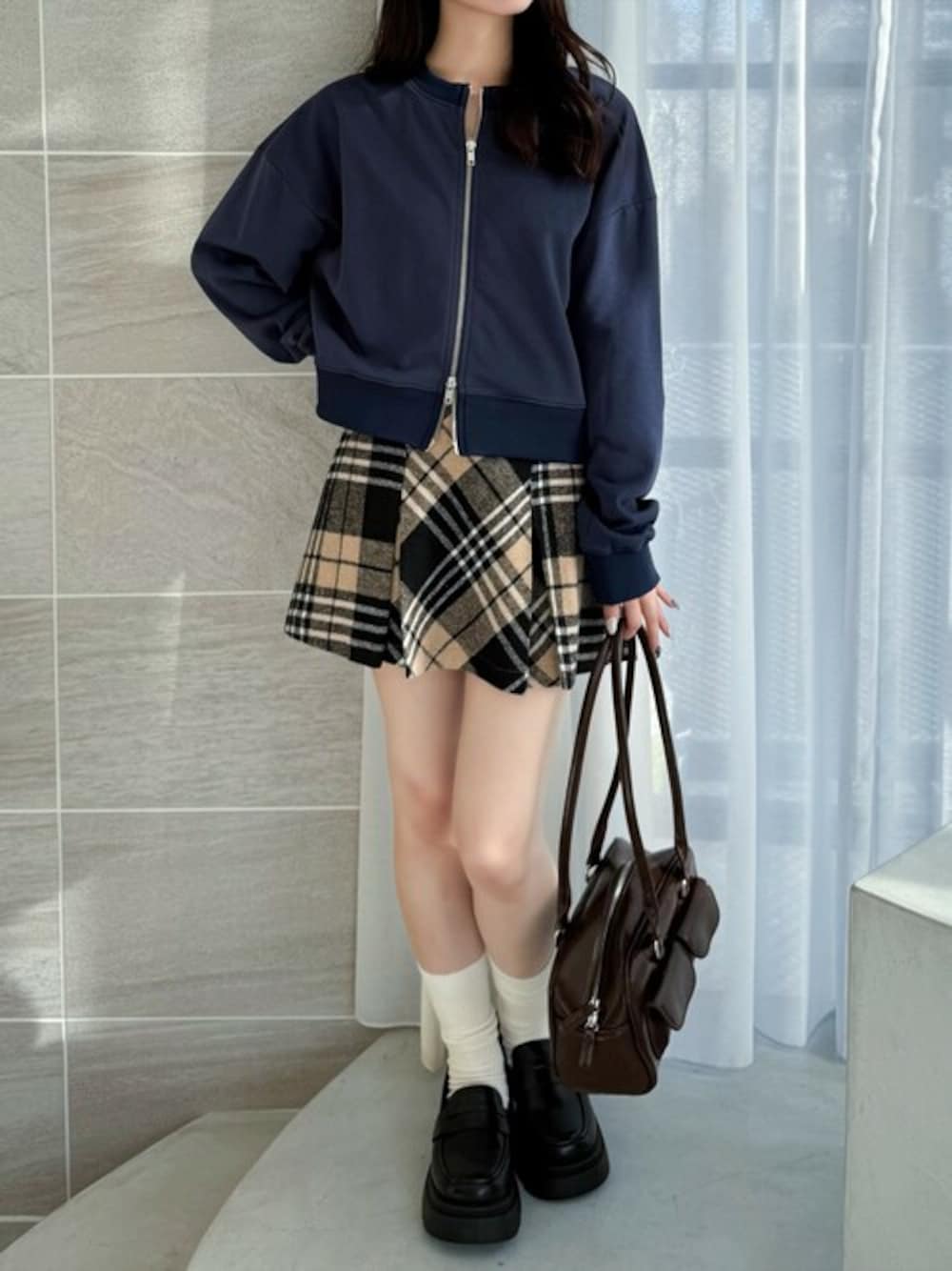 トレンドライクなダブルシップ仕様のトップスです。シップの開き具合によって、雰囲気を変えていただけます!さらにベーシックカラーから、差し色まで豊富なカラー展開です♪ トレンド感のあるチャック柄のミニスカートです。美脚見えが叶うようにシルエットにこだわりました!インパン付きなのも嬉しいポイントです♪