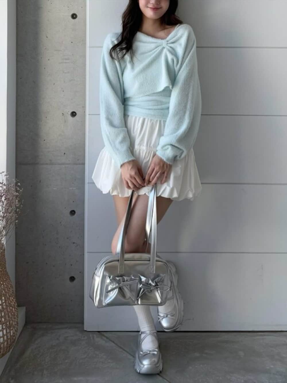 clear(クリア)(clear)のスカート「インパン付きリボンバルーンミニスカート[ウィッシュコア ガーリー リボン ミニ丈]≪SS新作≫」を使ったコーディネート