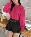 胸元の刺繍が目を引くトップスです。程よい着丈で自然とスタイルアップが叶います♪合わせやすいベーシックカラーも、コーデの主役になるピンクもオススメです◎ ショートパンツにプリーツスカートを重ねたようなデザインのミニスカートです。ベルト付きなのでサイズを調整していただけます!さらに年中ご着用いただけるデニム素材です♪