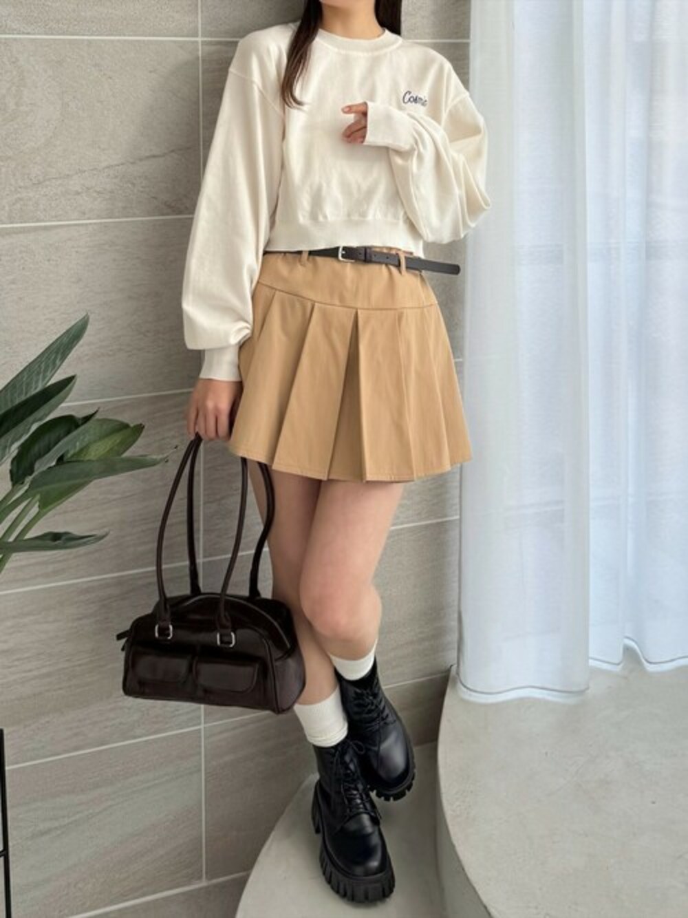 胸元の刺繍が目を引くトップスです。程よい着丈で自然とスタイルアップが叶います♪合わせやすいベーシックカラーも、コーデの主役になるピンクもオススメです◎ 程よく広がるプリーツデザインが可愛いミニスカートです。腰回りはすっきりとしたシルエットなので、スタイルアップが叶います♪インパン付きなのも嬉しいポイントです!