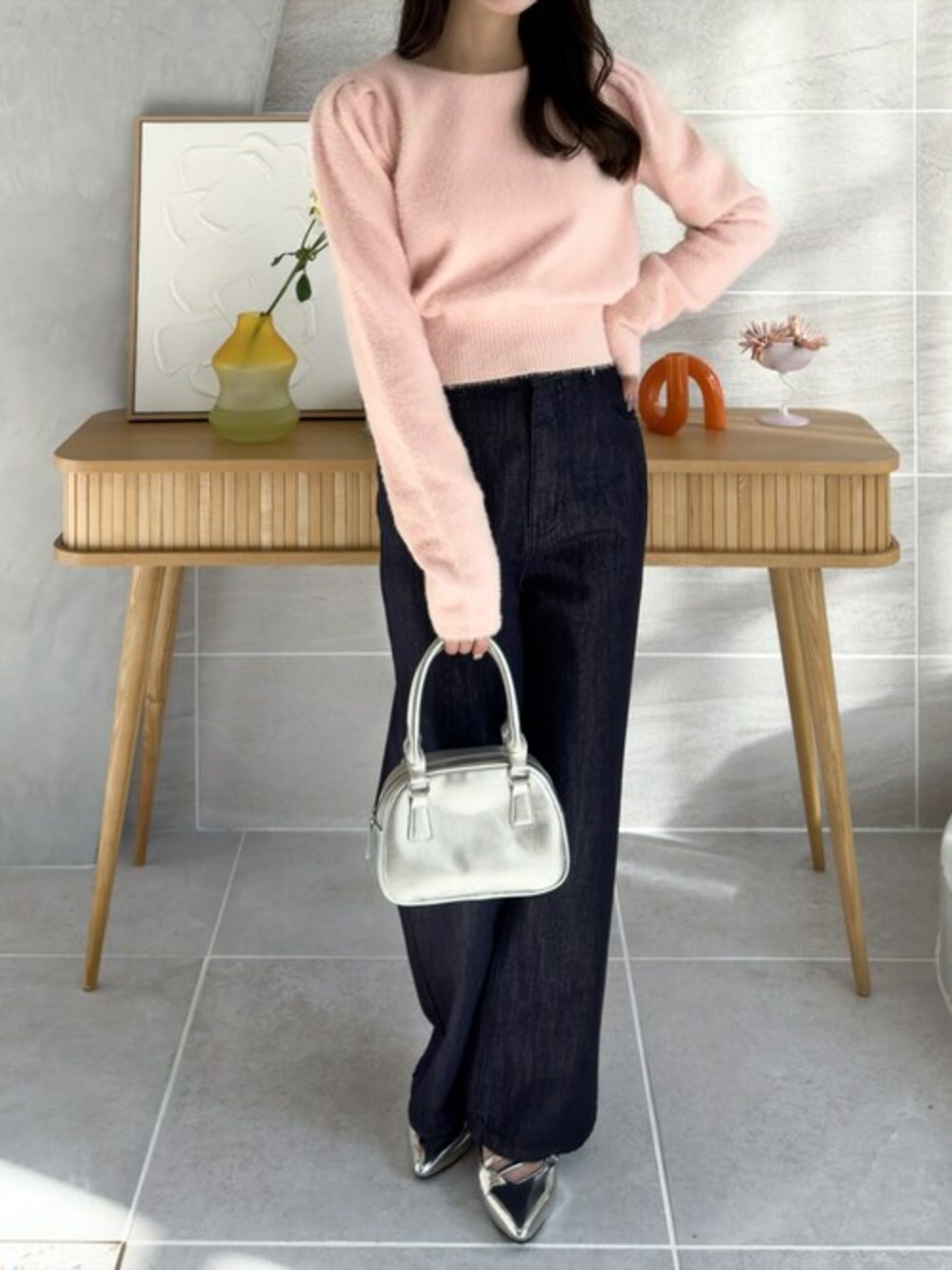 肌触りの良いショートフェザー素材のニットトップスです。バックリボンなので、さりげなく可愛い印象が叶います!程よい着丈で、どんなボトムスにも合わせていただけます♪ 程よい加工感のあるスラブデニム生地を使用したパンツです。落ち感のあるシルエットで、履くだけでオシャレ見えすること間違いなしです!WEB販売ではサイズ展開が豊富なので、どんな方にもご着用いただけやすいデニムパンツです♪