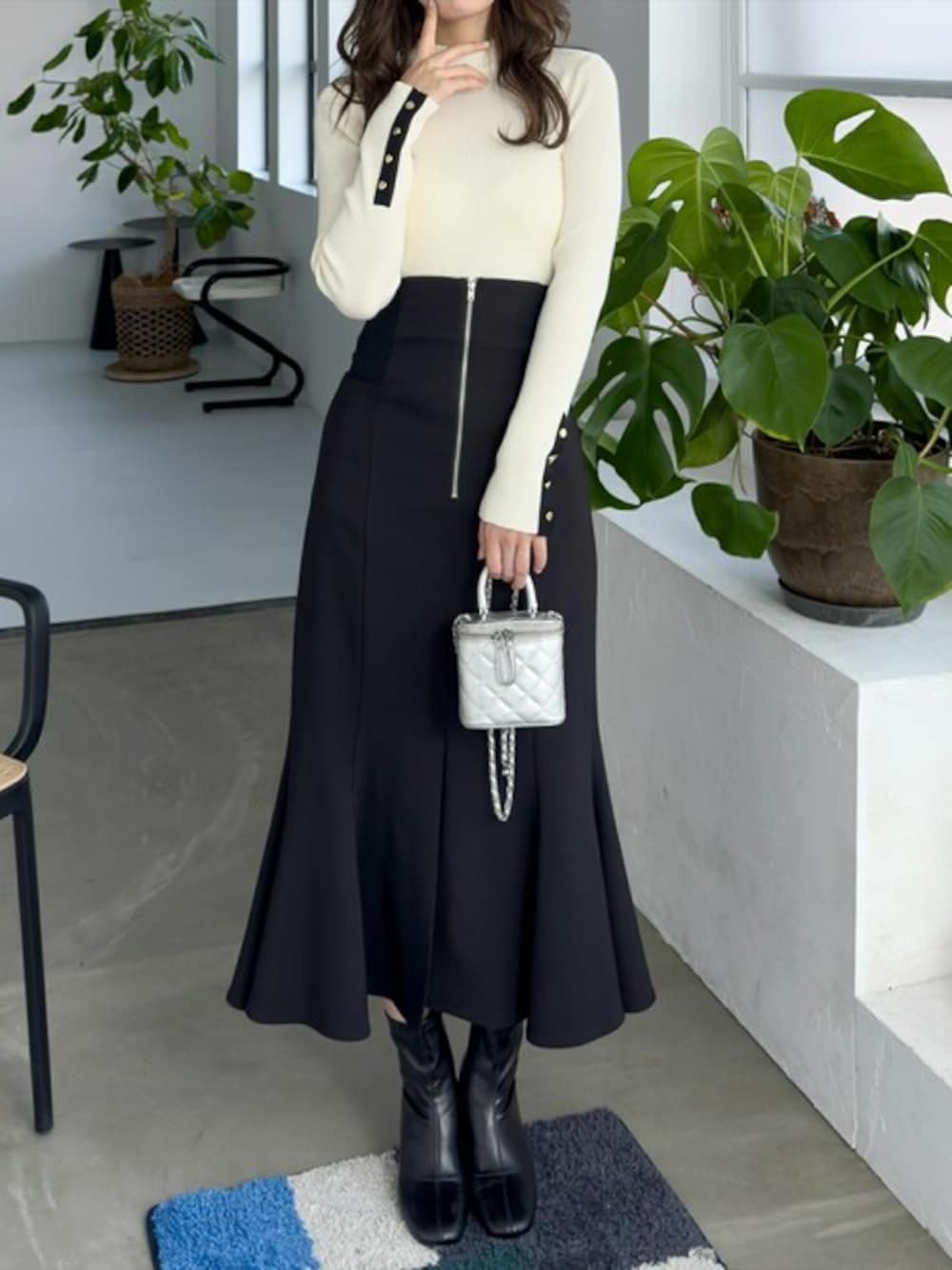 シンプルなデザインなので、どんな方にもご着用いただけるニットトップスです。 袖の配色やボタンがコーデのアクセントになります♪程よいフィット感で着心地も抜群です! 今回のスタイリングイメージは上品な大人の女性です♡